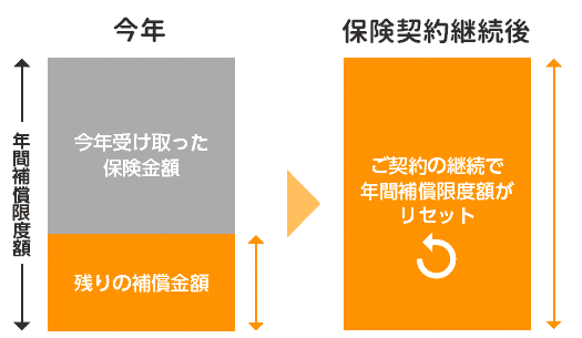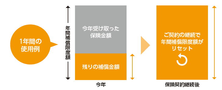 年間の補償限度額内ならいくらでも何回でも保険の利用が可能。※3