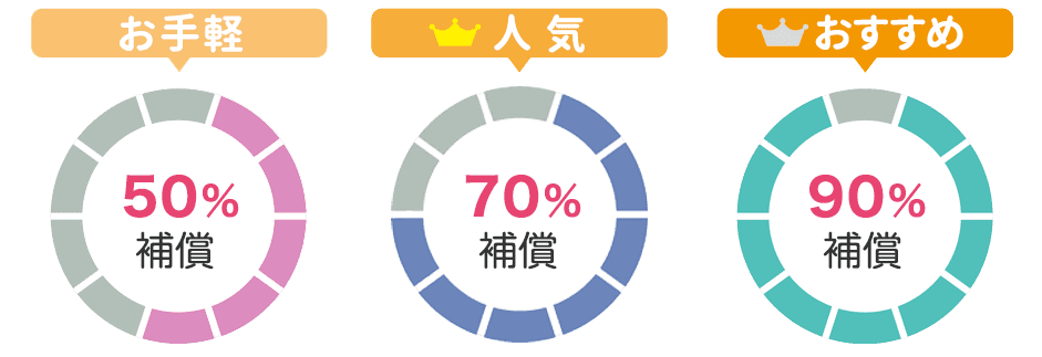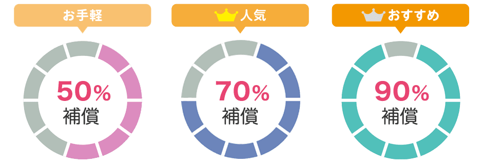 『いぬとねこの保険ネクスト』では、プランの中でもさらにお客様のライフスタイルと家計に合わせて3つの補償割合(50%・70%・90%)からお選び頂けます。