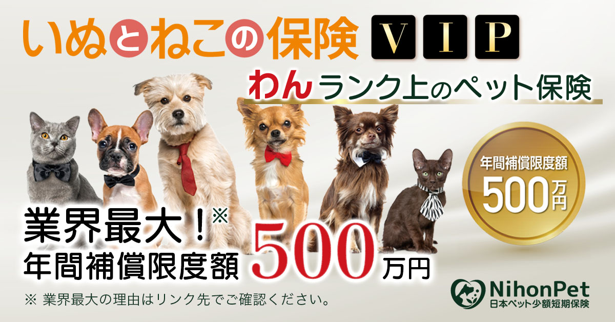 手厚い補償を最優先に考えるペットオーナー様向けに開発されたこの商品は、年間補償限度額500万円という業界最高額を誇るワンランク上のペット保険です。